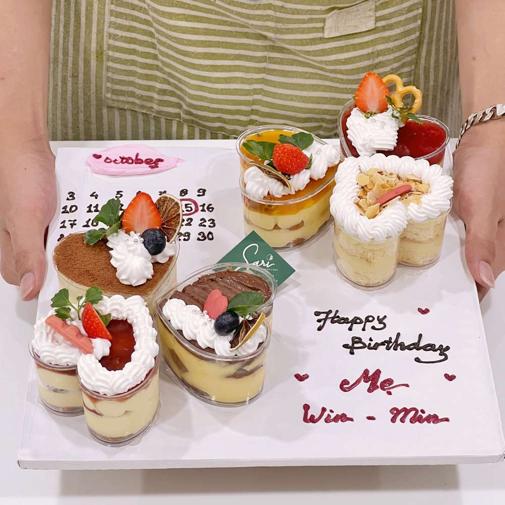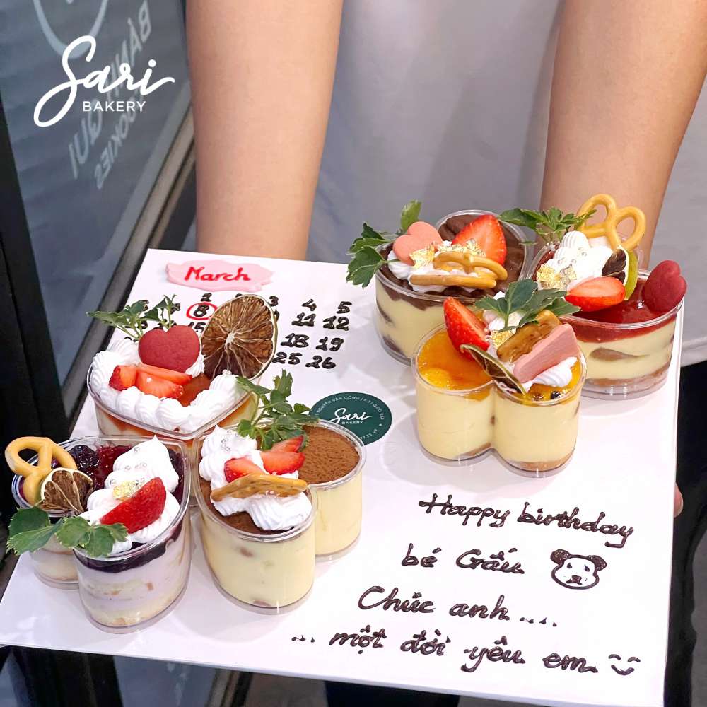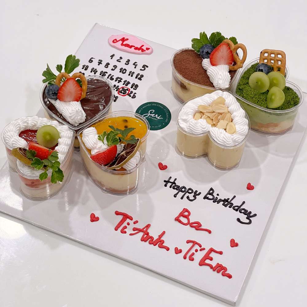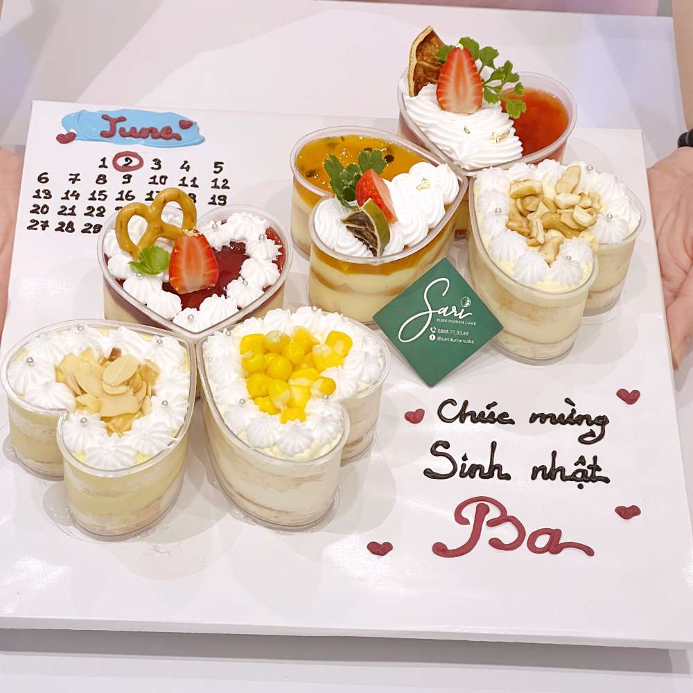 Set 6 ly tim mix vị là lựa chọn bánh sinh nhật mini và bánh tiệc nhỏ được yêu thích tại Sari Bakery. Set gồm 6 ly bánh hình tim với nhiều loại – nhiều vị khác nhau, trang trí đẹp mắt, dễ ăn và phù hợp cho mọi lứa tuổi.