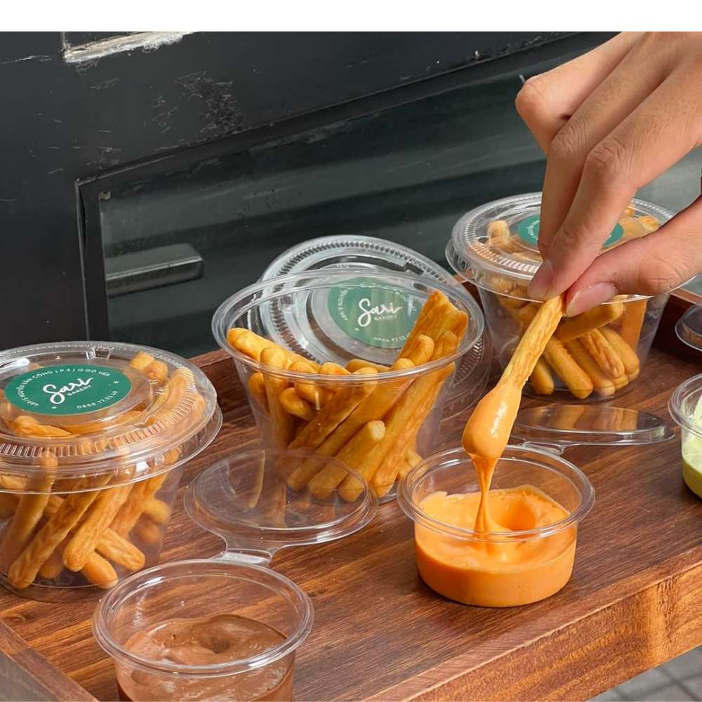 Bánh que chấm kem tại Sari Bakery là sự kết hợp hài hòa giữa những chiếc bánh que giòn tan