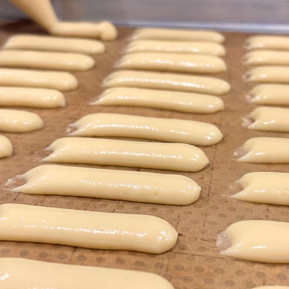 Bánh mang hình dáng thon dài đặc trưng của bánh lưỡi mèo,