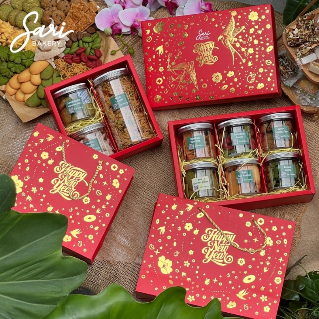 Hộp Quà Xuân 4 Hũ Sari 2026 – Set bánh mứt handmade sang trọng